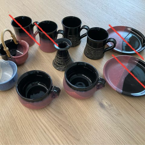 Marjaana Maulan astiasto myyntiin muuton tieltä. Kaikki kuvissa olevat astiat myydään yhdessä.