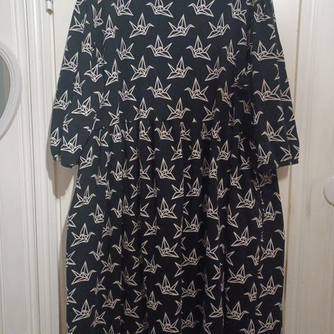 Ihana, valkoinen Yozen trikoomekko origami- kuosilla. Koko S. Mekossa on taskut ja tämä on todella mukava päällä:) Sopii mainiosti arkeen ja juhlaan! Nouto Ritaharjusta tai postitus.