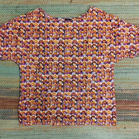 Erja Raittisen malliston naisten musta paita värillisellä kuvioinnilla koko L
