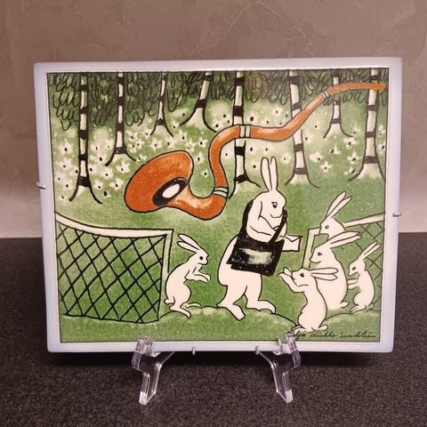 Bunny tile Smart Move designed by Heljä Liukko-Sundström. In recognition of years of service, was not available in stores.