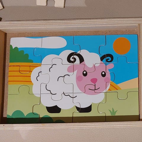 Palapeli eri asusteita voi vaihdella eläimille, 4 eri eläimen päätä. Käytön jälkeä.