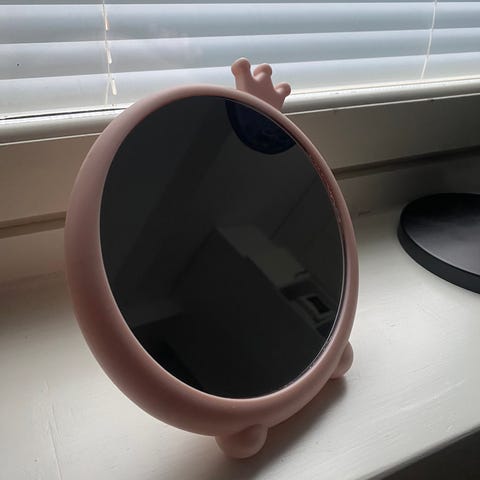 Myydään tarpeettomana pieni peili, jonka saa pöydälle tuettua. Toinen puoli suurentava. Peilin halkaisija 12 cm. Ehjä, ollut kaapissa säilytyksessä.