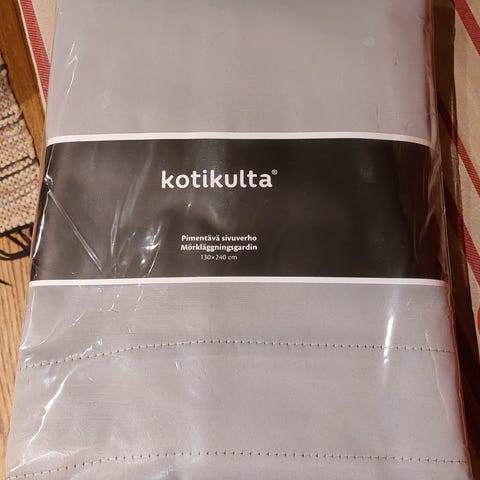 Sivuverhot 149x134cm x 4 kpl, pienempi pöytäliina 134x82cm ja tosi iso pöytäliina 241x134cm. Koko setti 20e. Kangas on laadukas ja helposti siliävää. Tummansiniset.