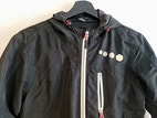 Myydään siistikuntoinen lasten kevyt takki. Väri musta, valkoiset ja punaiset vetoketju- ja nyöridetaljit sekä heijastavat kuusikulmiokuviot edessä ja takana. Takin materiaali on 100% polyesteri (sekä päällinen että vuori), kevyt ja mukava päällä. Hupussa kiristysnyörit ja helmassa säätömahdollisuus. Sopii hyvin kevääseen ja syksyyn.