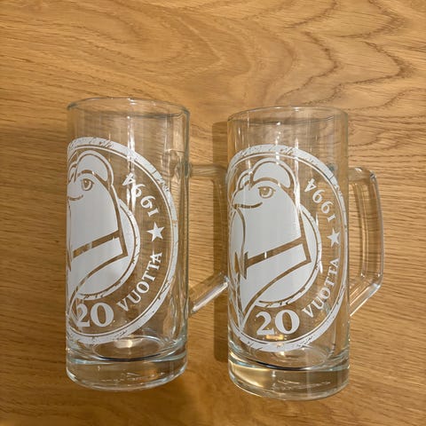 Viisi kappaletta. Kolmessa leima tallella, kahdesta kulunut melkein kokonaan pois. Kahdessa myös pienen pientä "valuvikaa", ( kaksi viimeistä kuvaa, vaikea saada kuvassa näkymään). Vetoisuus 3dl. Vain nouto.