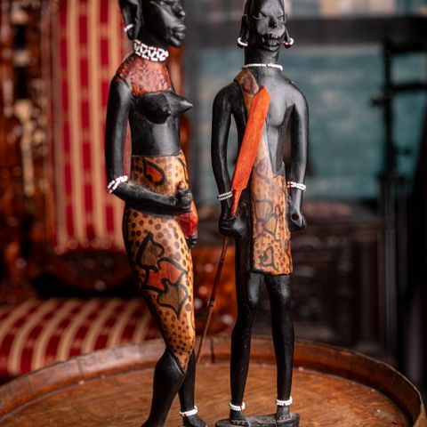 Puinen sisustusveistos hoikasta miehestä. Kädessään hän on pidellyt jotain, mikä puuttuu. Käteen voi laittaa vaikkapa tikkarin tai suolatikun.