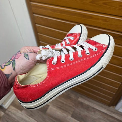 Converse tennarit, kokomerkintä 41/26 mutta tarkastusmitattu 41 koon pohjallisella joka 26.5cm ja se oli sopiva sisälle. Käytetyt, pesu/pudistus jää ostajalle. Kts kuvat. Ei sovituksia, ei toridiiliä, en tingi. Nouto tarkka aika etukäteen sovitusti ma-pe kl.10-16 hki88 tai postitse pakettina