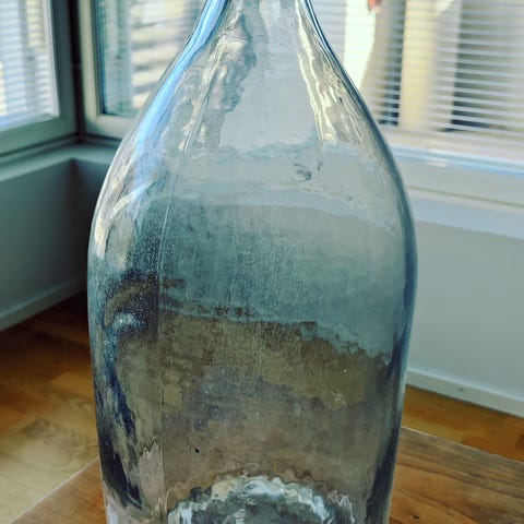 Erinomaisessa kunnossa oleva tosi vanha lasinen jotenkin öljyyn liittyvä esine. Kannen korkissa oleva "tappi/venttiili" painuu alas painettaessa ja jousi nostaa sen ylös. Pohjan kohoteksti kertoo jotain. Mieluiten nouto esineen materiaalin takia.