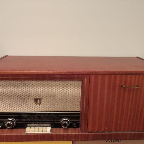 Mummolan vintiltä pelastettu Philips radio ja levari. Radio on 1935-1936 ja levysoittimen ikää en osaa arvioida mutta lienee samalta aikakaudelta. Virtajohdon haperuudesta johtuen en ole uskaltanut radiota testata, mutta levysoittimen moottori pyörii, mutta ilmeisesti kuminauha rikki tai venynyt niin ettei levy pyöri. Erkki Junkkarinen savikiekko -50 luvulta mukaan. Tästä radio harrastajalle tai ihan vaan koristeeksi. On niin painava paketti että en voi lähettää.