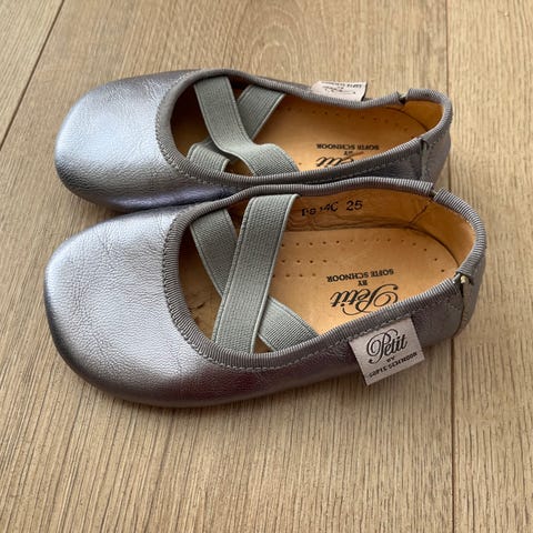 Uudenveroisessa kunnossa olevat tyttöjen hopeiset ballerinat. Koko 25, sisämitta n. 15,5cm.