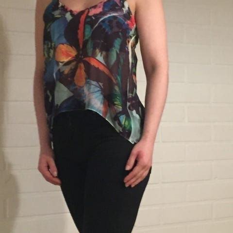 Toska perhos kuvioinen uudenveroinen, kerran pidetty väljän mallinen toppi.