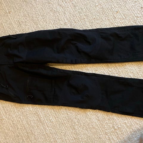 Muuten siistissä käytetyssä kunnossa olevat housut, mutta polvessa nirhaumaa ja katkenneita lankoja vahvikekankaassa.