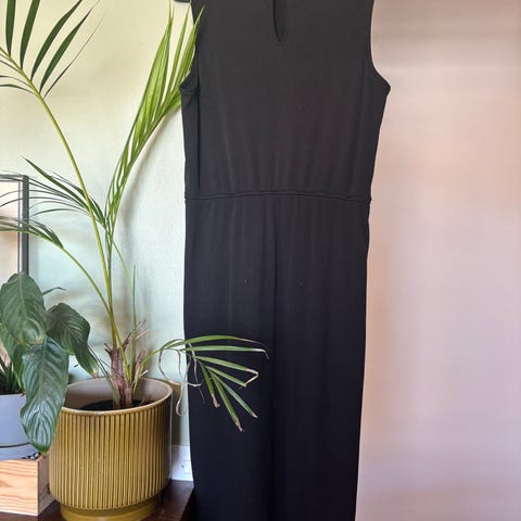 Lindexin musta pitkähihainen mekko, jossa valkoisia raitoja. Koko M. Kainalo-kainalo 56 cm, olkapää-helma 84 cm. Materiaali 100% polyesteria. Muutaman kerran käytetty.