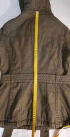 Warm and thick jacket, for autumn / Fall / or spring with lots of pockets, and a belt around the waist made of the same material.