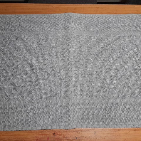 Mujista ostettu kylpyhuoneen matto. Väri on pääasiassa harmaa ja matossa mustat reunat ja hieman valkoista seassa. Ei ole käytetty ollenkaan, hintalappu ei ole kuitenkaan tallessa.