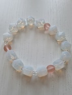 Joustava rannekoru opaliitti helmistä/rosa huurrelasi helmistä(väri hieman vaaleampi kuin kuvassa),pituus 19.05cm,paino 20g helmien halkaisija 10-5mm, postitus,maksu Mobilepay,tilinsiirto