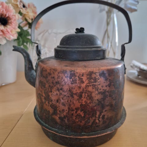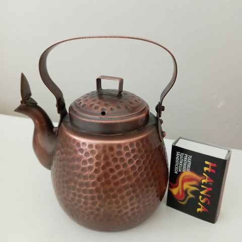 Siro kuparipannu. Nuppi ja kahvat messinkiä. Vetoisuus n 0,5L. Mitat: halk 13 cm, kork. 10 cm + nuppi