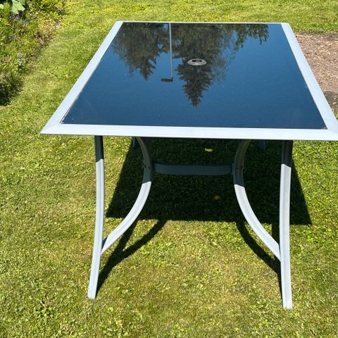 Iso terassipöytä, runko metallia ja pöytäosa lasia. Lasin saa tarvittaessa irrotettua rungosta. Täysin ehjä poislukien yhdessä jalassa olevaa isompaa jälkeä. Ei kuitenkaan haittaa käyttöä. Runko on nähnyt elämää mutta räikeitä virheitä ei ole. Lisäkuvista tarkempaa käsitystä pinnan kunnosta.