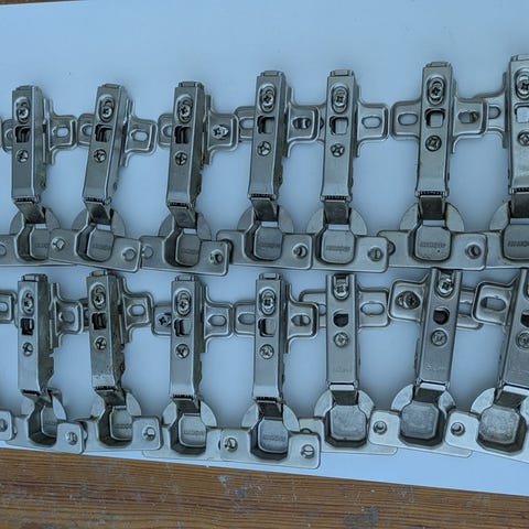 Piilokulmakaapin oven saranat. Mepla. 7kpl jousella, 7kpl jousettomia. Yhteishintaan 70 euroa.