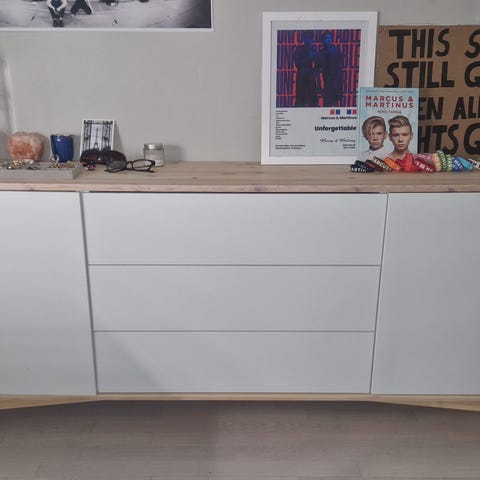Senkkiä siirrettäessä tullut yksi pieni jälki kannen takareunaan, siitä kuvia viimeiset viisi kuvaa! On pieni ja huomaamaton jälki ja jää piiloon, koska on takapuolella. Muutoin kunto on kuin uusi. Kun ovet avaa niin senkistä tulee edelleen tammen tuoksu. Kaikilla hyllyillä ei ole edes säilytetty mitään.