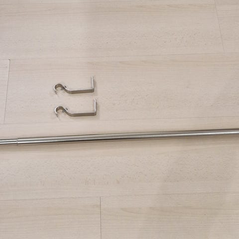 Säädettävä harmaa verhotanko. Lyhimmillään 195 ja pisimmillään 380+cm. Kaksi seinäkiinnikettä.