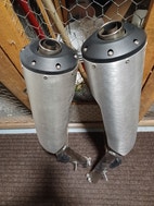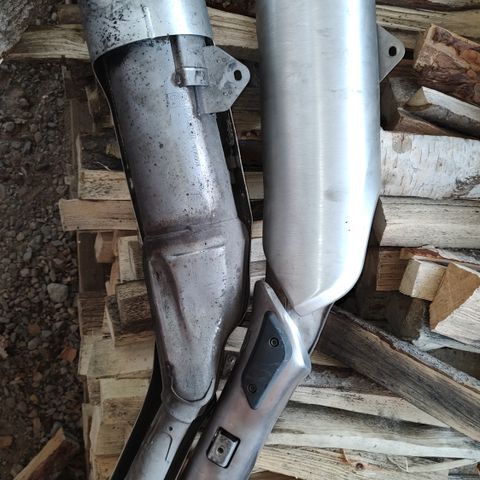 SUzuki V-Strom DL 1000, vm. 2005, alkuperäiset pakoputket (äänenvaimentimet). Näkyvän puolen suojapellit täysin virheettömät, toisen puolen ns. rungot jonkin verran hapettuneet eli pintaruosteessa, katso kuvat. Hinta pudotettu 120 euroon (160 € - 40 €) ja se alkaa nyt olemaan aivan minimissään. Ostaja noutaa Lahdesta tai vaihtoehtoisesti maksaa postituskustannukset. Tosiostajat, ottakaa yhteyttä.