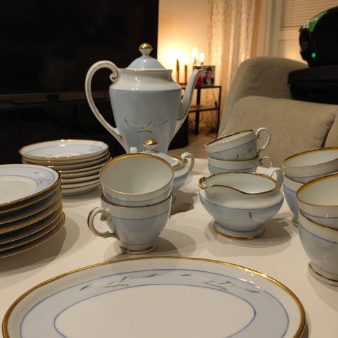 Lokki teekuppi / aamiaiskuppi , lautanen sekä asetti