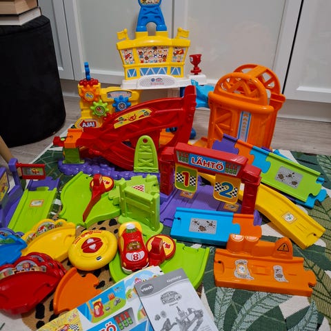 Large toot toot drivers (vtech) collection of tracks, garage and other accessories.