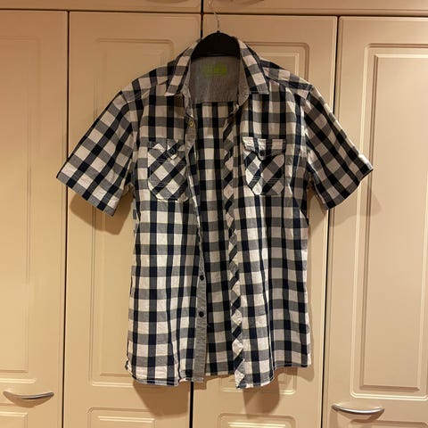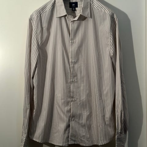 Vähän käytetty musta raidallinen kauluspaita. Toisessa kuvassa raidat näkyvät paremmin.