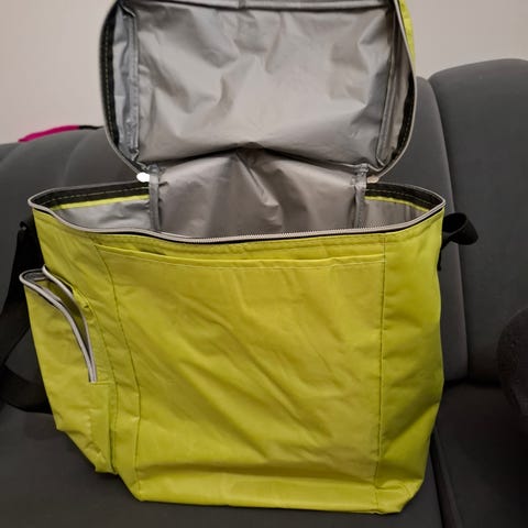 Hyvä kylmälaukku siisti pitää kylmänä muovipintanen, kahvalukitus.