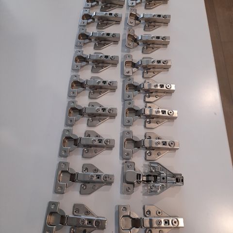 Kalusteovien saranat. 32kpl.Pikalukolla. Aukeamiskulma noin 110 astetta. Päätysaranoita 15-16mm:n sivulevylle. Yhteishintaan 160 euroa.