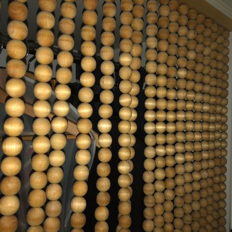 Aarikan kaunis oviverho messingin värisillä yhdistysrinkuloilla. Olleet käytössä tilanjakajana. Kuvassa kaksi palaa liitettynä ja näitä myynnissä 16kpl. Yhden palan pituus 30cm eli kaksi päällekkäin tekee rinkulan kanssa reilu 60cm. 1960-1970-luvulta. Kuvissa näkyy paremmin elämisen ja ajan jäljet. Myydään vain kaikki kerralla.