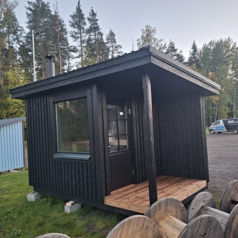 Muutaman vuoden käytetty Savusauna traktorin peräkärryn rungolla. Lämmitys ulkoa ja kätevä hiilien poisto tasapohjaisesta pesästä. Kiuas metalli kehyksen sisässä. Ulko osat ruostumatonta, sisäpuoli mustaksi maalattu. Ruostumaton kuumavesisäiliö hanalla. Jykevät lauteet Rakenne lattiassa toteutettu ilmaraolla. Katossa paloeriste, samoin seinillä. Kääntyvä katto ja lattia terassin osalla.
