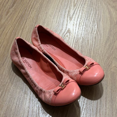 ”Joustavat” LV:n balleriinat koossa 38. Monogram kuvio. Hauskat balleriinat esim. heittää laukkuun mukaan juhliin lähtiessä ja vaihtaa korot näihin kun tarve vaatii.
