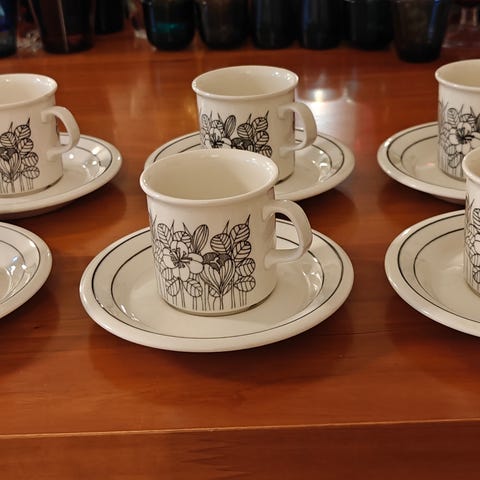 Myydään 6kpl Arabia Krocus-kahvikuppia+asetit