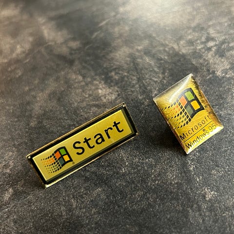 Windows 95 start nappula pinssi.