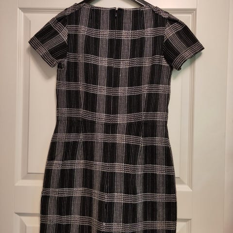 Pientä kokoa, merkitty koko 14, eli virallisesti n. 42 ja sovituskuvissa koon 42 /L päällä, mutta on hiukan liian napakka, mielestäni parempi koolle 40, tai vähän väljänä 38. Eli M tai pieni L. Kai-kai n. 49,5 cm, vyötärö n. 42,5 cm, olka-helma n. 102 cm.
