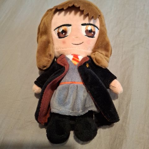 3 kpl Harry Potter Yu Me -pehmoja: Harry Potter + 2 x Hermione, korkeus n. 10 cm. Kaksi hahmoa roikkuu lenkissä, yhdessä reppuklipsi. Sille on näemmä myös piirretty silmäripset 😁