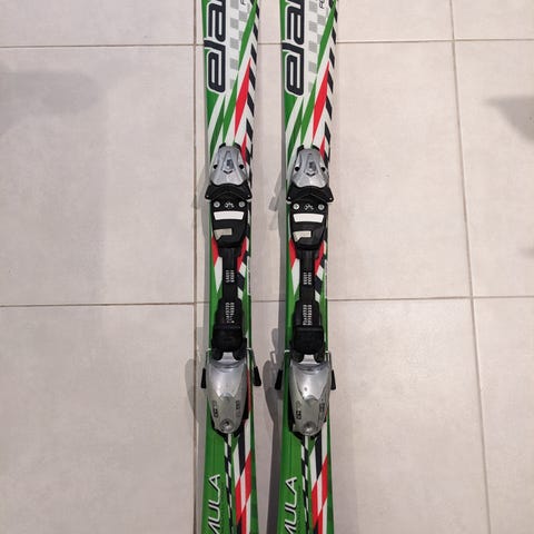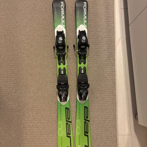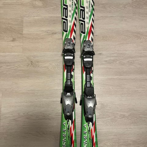 Elan Formula laskettelusukset, pituus 120 cm, väri vihreä. Monot 23,0cm. Kypärä 54-56cm.