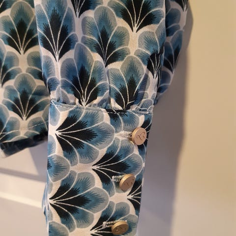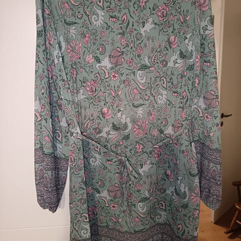 Uusi sinisenkirjava v-aukkoinen tunika /mekko. Materiaalia joustavaa kangasta. Koko xl / xxl. Takaa yksivärinen tummansininen. Pituus noin 92 cm, ry noin 135, venyy. Myynnissä myös muita xl/xxl mekkoja sekä kenkiä 41 ja 42.