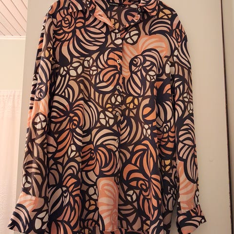 Myydään Marimekon oranssi Gurli Pieni Aitanovi silkkipusero. Paita uudenveroisessa kunnossa, sillä jäänyt käyttämättömäksi. Koko 36, mutta väljää mitoitusta, joten vastaa kooltaan 36-38. Pitkä malli, joten sopii puseroksi, mekoksi tai tunikaksi. Materiaali 100% silkki.