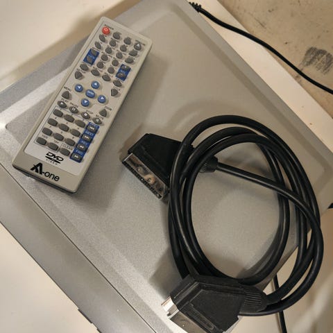 DVD-soitin, sisältää kaksi näyttöä. Näytön koko noin 7 tuumaa, väri harmaa. Mukana kiinnitysvyöt ja virtajohdot. Sopii auto- tai matkakäyttöön. Näytöt täysin kunnossa, kuten näkee kuvasta.