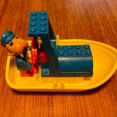 Fabuland setti 3644. Kuskin istuin ja lippu puuttuu. Musta moottorin osa tehty palikoista. Leijona on väärä ja jotkin jäsenet hieman löysät. Ei ohjeita.