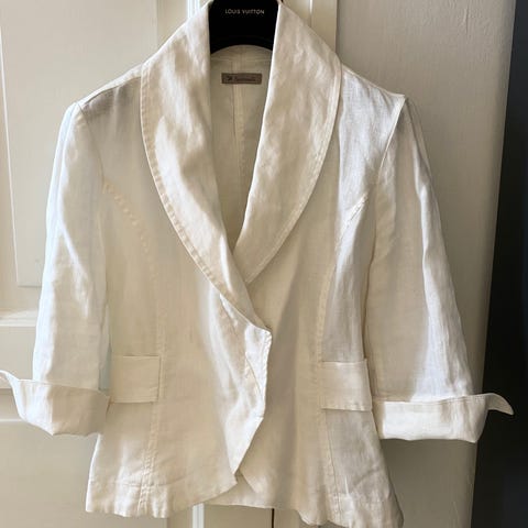 Uusi lyhyt jakku 100% pellavaa. Koko medium. Väri kitti. Vartaloa myötäilevä, kaunis malli.