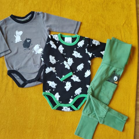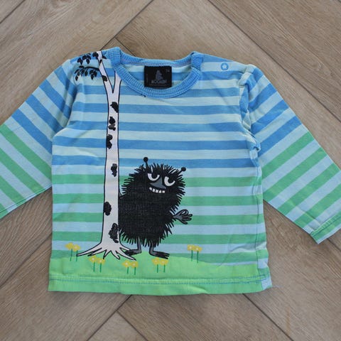Muumipaita koossa 74, pienehköä mitoitusta eli menee hyvin jo 68 kokoiselle, kerran pidetty eli uutta vastaavassa kunnossa.