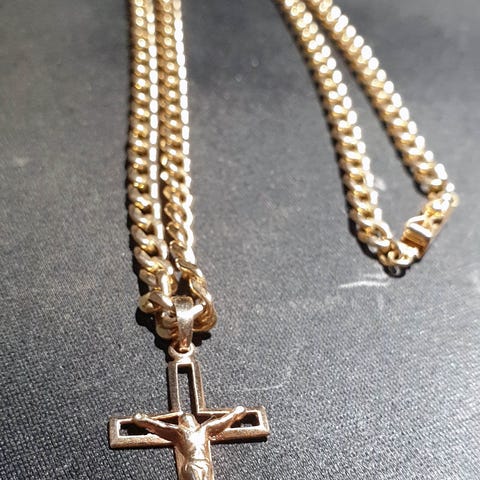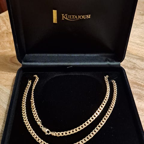 Kultaketju jossa valkokultainen krusifiksi. En myy romukullan hintaan. Erittäin kaunis kokonaisuus ja uuden veroinen. Ketju 60cm, 9.4g, lev 2.5mm, paksuus 1mm. Krusifikski 3.3cm, 2.2g, Upea kaulaketju vaikka lahjaksi. Kultasepällä käyty ovh 2150€ ja kilpailee hyvinkin uuden rinnalla🌺