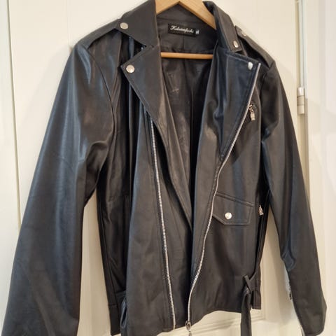 Musta nahkatakki. Koko on lähempänä L kuin XXL