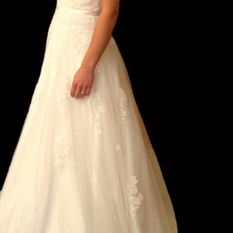 Kerran häissä pidetty ihana ja kaunis Lilly merkin hääpuku laahuksella koossa M 🩷 Puku on valkoinen ja siinä on koristehelmi kirjailuja. Puvussa on takana nyörit, joten kokoa saa säädettyä. Sisällä on lisäksi hakaskiinnitteinen 'vyö', jolla puku pysyy erinomaisesti päällä. Rintojen kohdalla toppaukset. Laahuksessa on rannelenkki ja laahuksen saa myös solmittua kahdella mekon alla olevalla nauhalla ylös, esimerkiksi tanssin ajaksi. Itse olen 156cm pitkä ja juhlassa minulla oli n. 10 cm korot. Puku on siis lyhennetty ammattilaisen toimesta näihin mittoihin.
