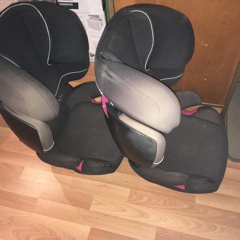 Cybex Pallas -fix turvaistuimen alkuperäiset mustat päällikankaat. Kuvien oton jälkeen menivät vielä pesuun joten ovat puhtaat. Pari pientä reikää kankaissa alemman osan sarvessa, mutta eivät haittaa käyttöä.