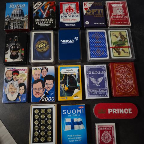Taskukokoinen pelisetti jostain 80-luvulta. Mekanismi täysin ehjä, kaikki osat tallella ja virheettömässä kunnossa. Pelikortitkin pakkasileitä ja myös jokerit tallella.